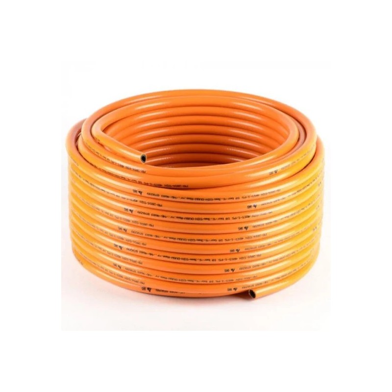 Tubo gomma per gas propano GPL dimensione 8x15mm colore arancio secondo normativa.
