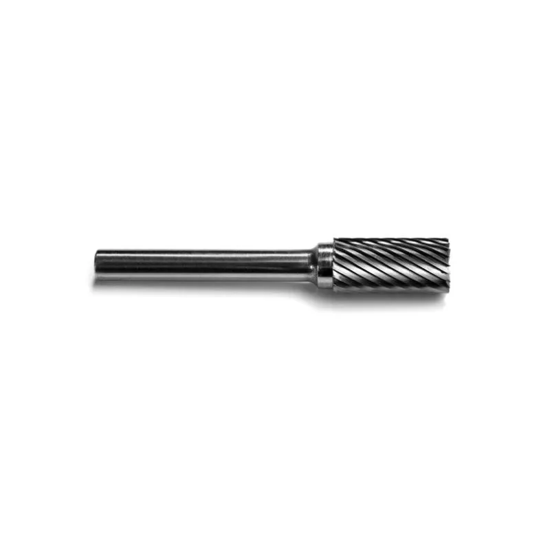 Fresa rotativa in metallo duro (carburo di tungsteno) NUOVA FILP per sbavatura, sagomatura, ampliamento fori e finitura superficiale su metalli, acciaio, ghisa e leghe. Gambo cilindrico per montaggio su smerigliatrici diritte e utensili pneumatici. Nuova Filp S.r.l., con il marchio Stella Bianca, produce dal 1924 a Leinì (TO) utensili rinomati per qualità e affidabilità: frese a tazza, frese rotative, svasatori, allargafori, seghe circolari e lame industriali. Materiali di primissima scelta e tecnologie all'avanguardia.