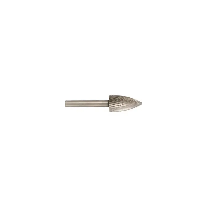 Fresa rotativa in metallo duro (carburo di tungsteno) NUOVA FILP per sbavatura, sagomatura, ampliamento fori e finitura superficiale su metalli, acciaio, ghisa e leghe. Gambo cilindrico per montaggio su smerigliatrici diritte e utensili pneumatici. Nuova Filp S.r.l., con il marchio Stella Bianca, produce dal 1924 a Leinì (TO) utensili rinomati per qualità e affidabilità: frese a tazza, frese rotative, svasatori, allargafori, seghe circolari e lame industriali. Materiali di primissima scelta e tecnologie all'avanguardia.