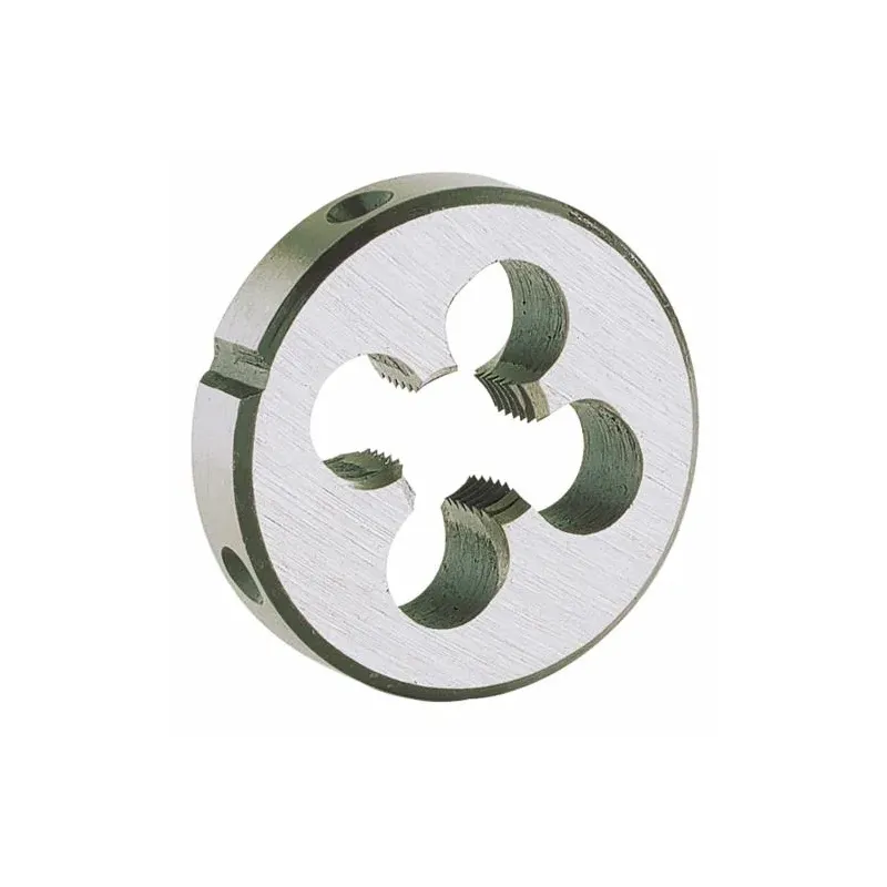 Filiera in acciaio al cromo-vanadio (C.V.) per la filettatura esterna di barre, tubi e tondini. Passo metrico ISO con taglienti rettificati per filetti precisi e uniformi. Da utilizzare con portafiliera della misura corrispondente.