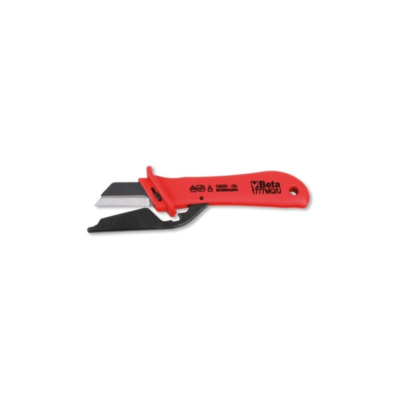 Coltello professionale isolato Beta per elettricisti, certificato per lavori sotto tensione. Lama in acciaio inossidabile con rivestimento isolante conforme alla norma IEC 60900. Impugnatura bimateriale con protezione dielettrica.