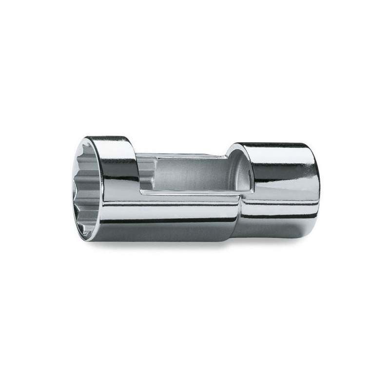 Chiave specialistica Beta per autoriparazione, progettata per raggiungere e azionare componenti specifici del motore e dell'impianto del veicolo (iniettori, sonde lambda, candelette, dadi mozzo). Profilo speciale calibrato per il componente di destinazione.