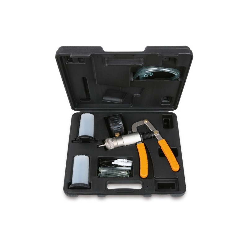 Pistola di compressione professionale Beta per test di compressione su motori a benzina e diesel. Manometro di precisione con valvola di ritegno per lettura della pressione massima del cilindro. Kit completo con adattatori per le principali tipologie di filettatura.