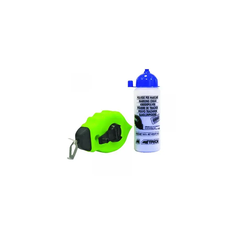 Traccialinee professionale (filo a piombo) per la tracciatura rapida di linee rette su superfici in cantiere. Custodia con rientro automatico del filo e serbatoio per polvere colorante.