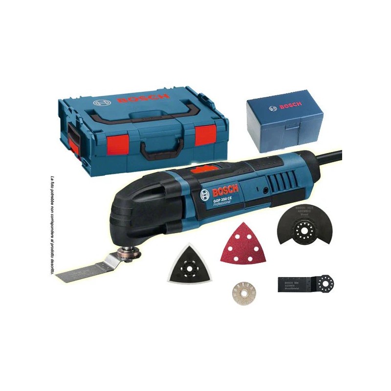 Bosch GOP 250 CE Professional è un utensile multifunzione oscillante cablato da 250 W con movimento oscillante regolabile da circa 8 000 a 20 000 oscillazioni/min che consente lavori precisi di taglio, levigatura, raschiatura e rifinitura su materiali diversi. Il sistema di preselezione della velocità e l’elettronica Constant Electronic mantengono un numero di giri costante anche sotto carico, mentre l’impugnatura con rivestimento Softgrip garantisce comfort e controllo durante l’uso prolungato. Il set include una serie di accessori utili per applicazioni immediate e varie, oltre alla valigetta per trasporto e organizzazione.