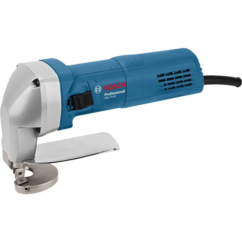 Cesoia elettrica Bosch GSC 75‑16 Professional per taglio di lamiere e metalli con motore potente da 750 W, progettata per offrire tagli veloci, netti e precisi su materiali metallici di varia natura. Strumento cablato adatto a officine, cantieri e lavorazioni metalliche intensive con elevata maneggevolezza e facilità di utilizzo anche in curve strette.