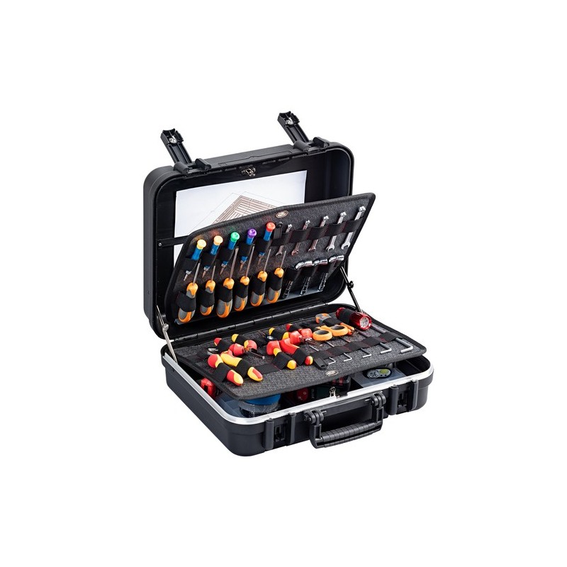 Valigia in ABS modello Boxer PEL, dimensioni 430x340x156 mm, marca GT Line. L'ABS offre elevata resistenza agli urti e leggerezza. Interno personalizzabile per adattarsi a diversi tipi di utensili e strumenti.