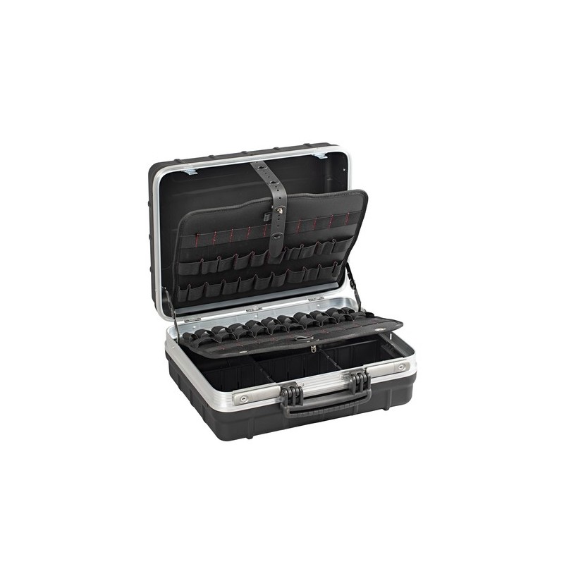 Valigia nera modello Atomik 215 PEL, dimensioni 465x352x215 mm, marca GT Line. Grande capienza per kit completi di utensili e strumenti, con interno personalizzabile e struttura rinforzata.