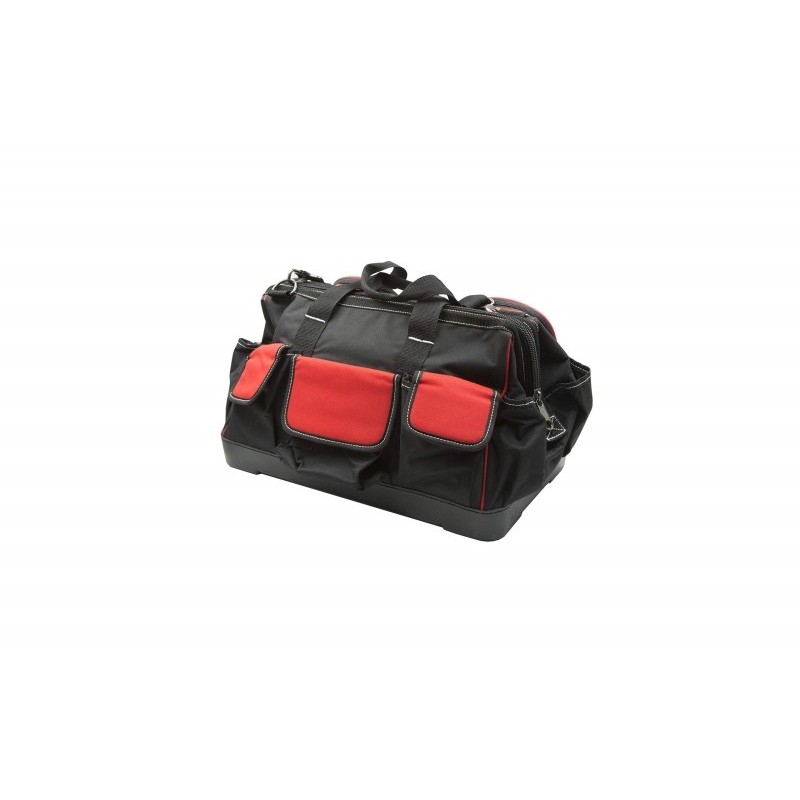 Zaino per utensili serie LTI marca Krino con fondo rigido rinforzato e 29 tasche organizzate. Il fondo rigido protegge gli utensili e mantiene la forma dello zaino anche quando appoggiato a terra. Le 29 tasche consentono di organizzare un'ampia dotazione di utensili.