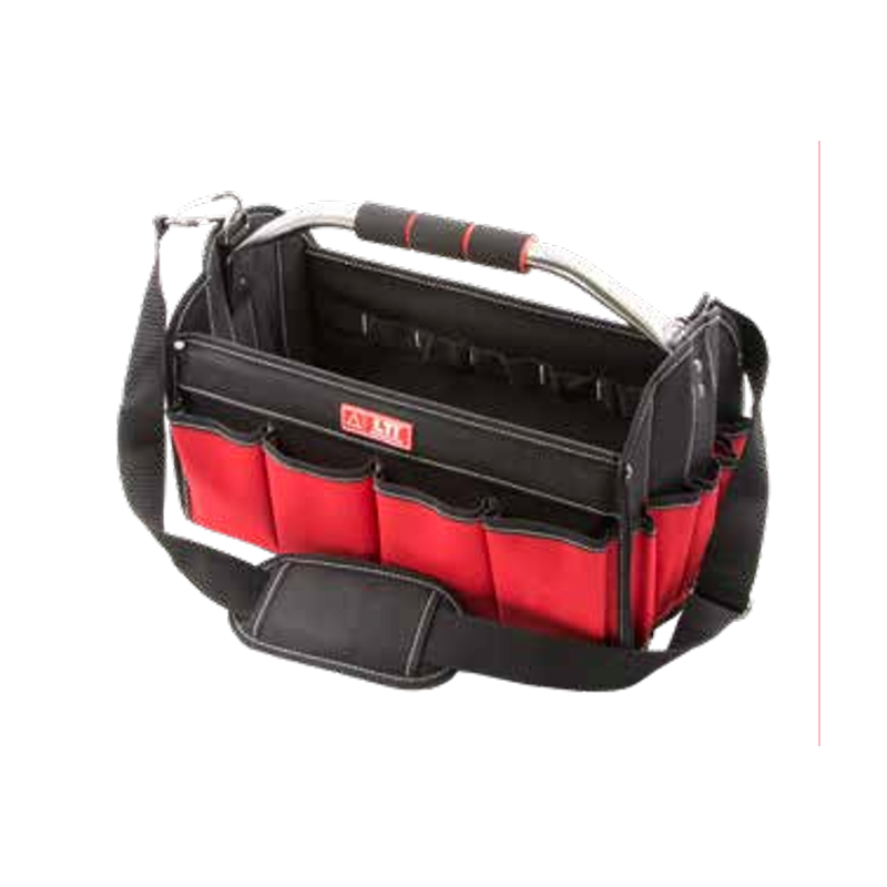 Cestello portautensili ripiegabile serie LTI marca Krino con tracolla e 19 tasche. Si ripiega completamente quando vuoto per uno stoccaggio e trasporto compatto.