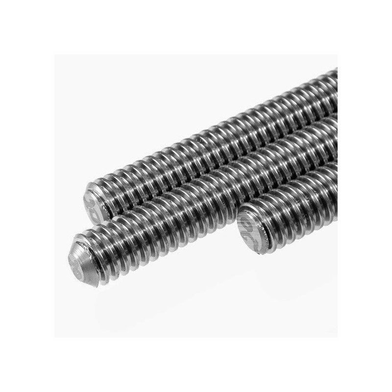 Barre con profilo di filettatura trapezoidale (non metrica) per sistemi di movimentazione lineare. Il profilo trapezoidale è progettato per trasformare il moto rotatorio in moto lineare con efficienza e capacità di carico superiori alla filettatura metrica.