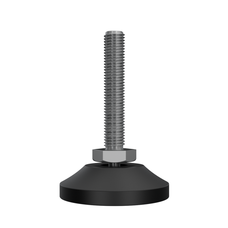 Piedino regolabile in altezza in plastica marca BMP. 3 misure con base D.40 e D.50mm. Filetti M8 e M10. Per livellamento macchine e strutture.