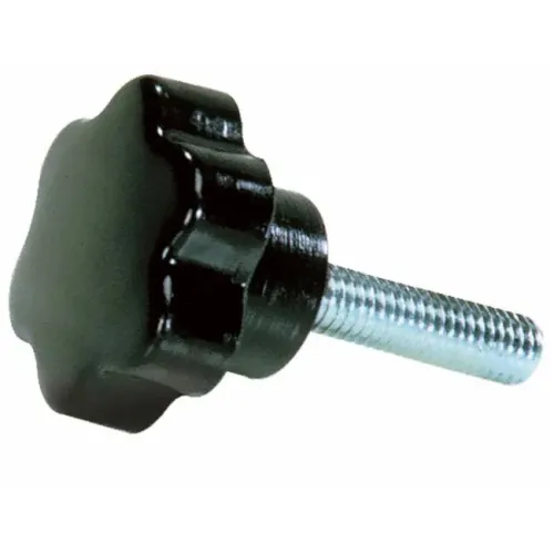 Volantino in plastica a 6 lobi marca BMP serie VP con perno filettato maschio passante. 14 misure da D.30 a D.60mm con diversi filetti e lunghezze. Per comandi con bullone passante.